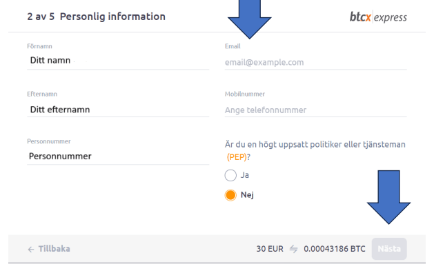 (https://bt.cx/sv/express/) - Enter the amount you need to pay to Nordicstream, and make sure you’ve correctly converted the amount to EUR.
