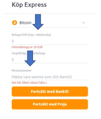 - Then enter your personal ID number below and continue with either BankID or Freja.